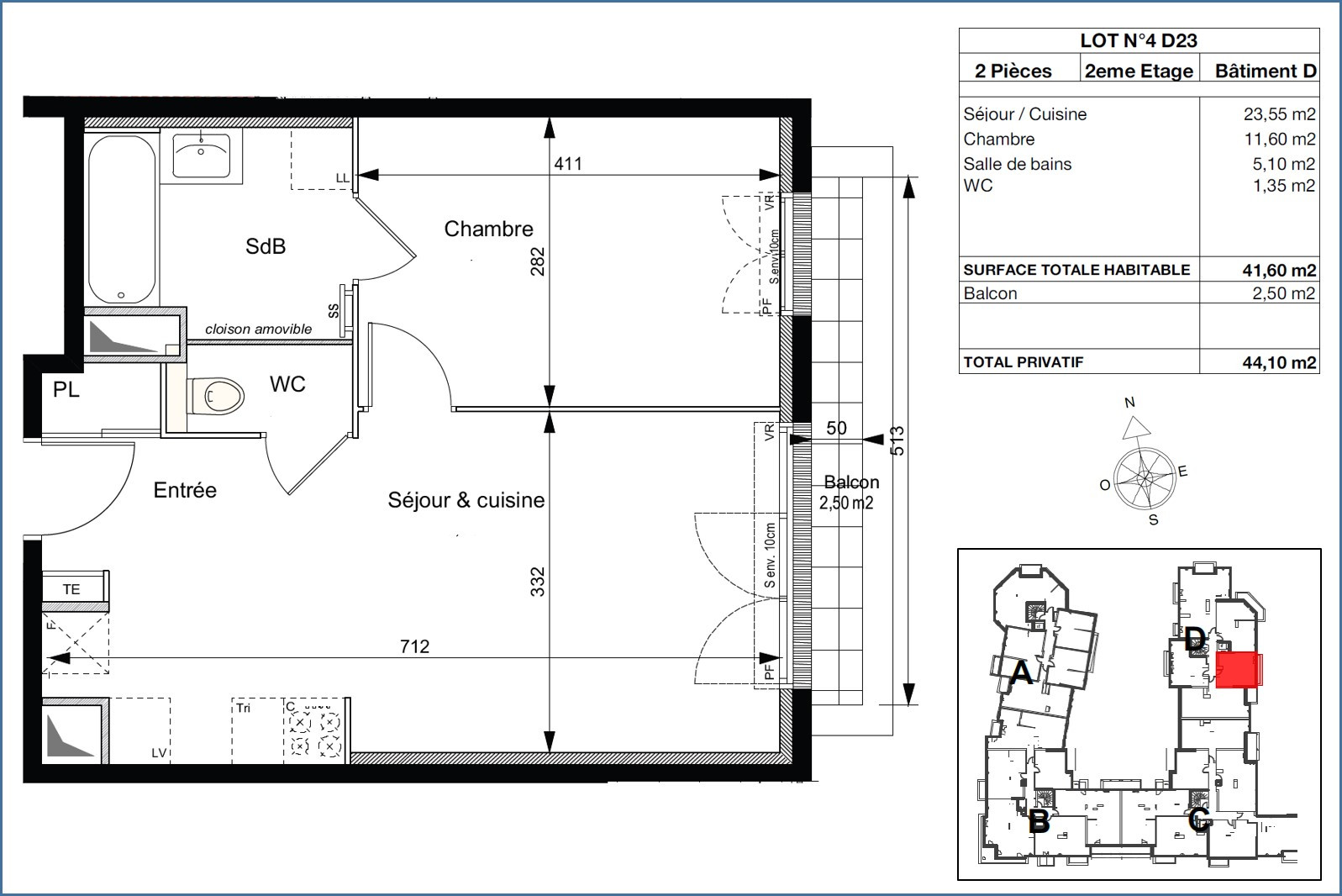 _ Superbe appartement 2 pièces au 2ème étage orienté EST de 42 m² avec balcon et vue sur le canal dans cette nouvelle Résidence au Plessis Robinson. Disponible au cours du 1er trimestre 2026.