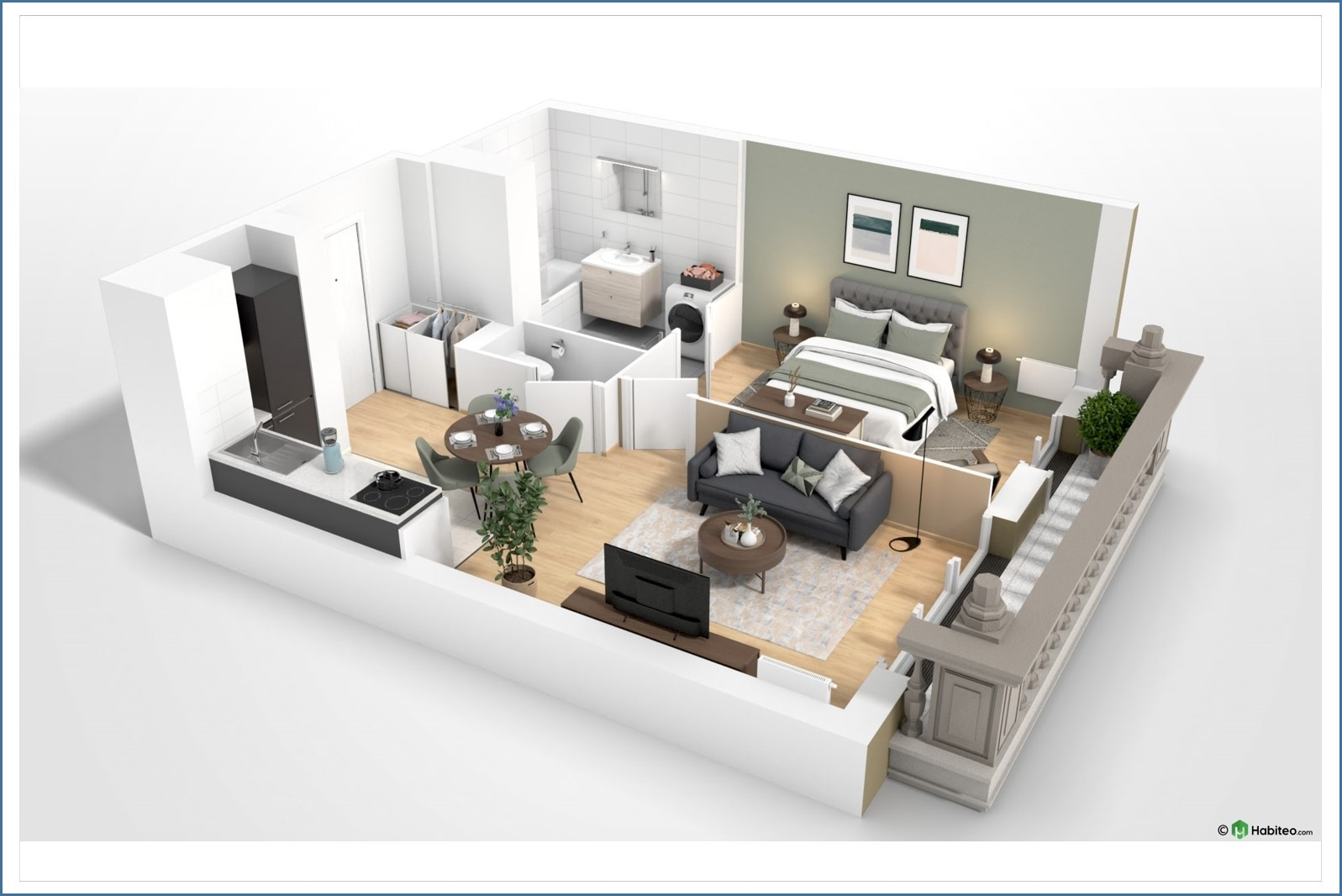 _ Ce bien comprend une grande pièce de vie séjour / cuisine de 24 m² lumineuse avec sa porte fenêtre et ouverte sur le balcon, 1 grande chambre de 12.m², une Salle de Bain avec branchements pour le Lave Linge ainsi qu'un placard et un WC séparé.