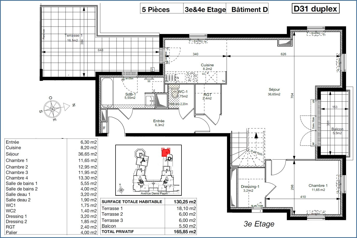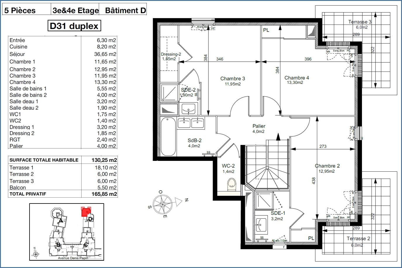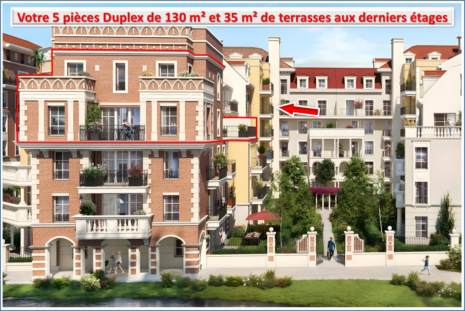 _ Splendide appartement 5 pièces DUPLEX aux DERNIERS ETAGES de 130 m² et 35 m² de Terrasses en triple exposition dans cette nouvelle Résidence quartier îlot Ponant au Plessis Robinson. Disponible au cours du 4ème trimestre 2025.